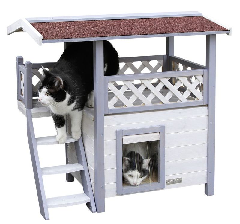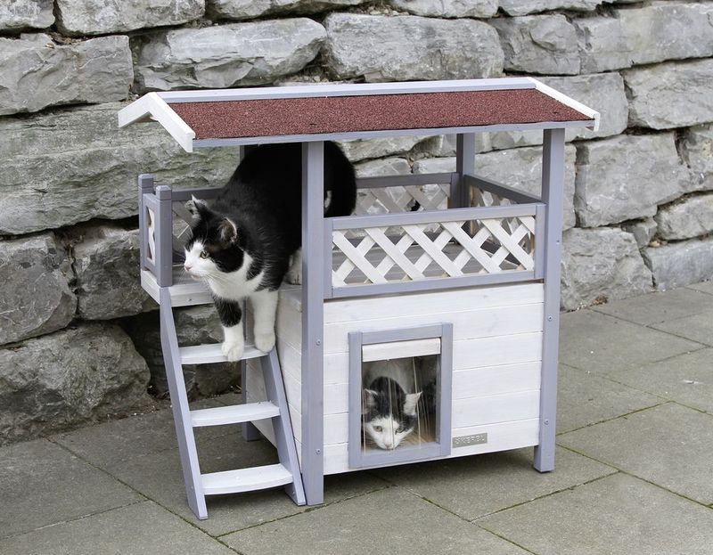 Din katt kan vila inuti sitt hus och den kan ligga och spana från sin "takterass" där katten har skugga under dagen eller skydd för regn.
