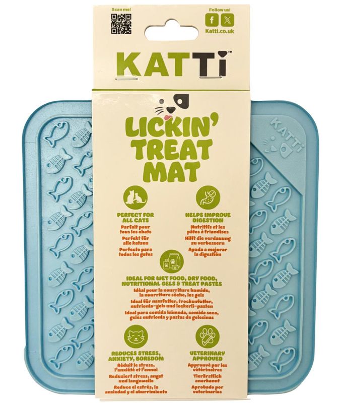 Katti Lickin' slickmatta är designad för att ge din katt en lugn aktivering samtidigt som den äter långsammare. Genom att slicka fodret bit för bit stimuleras kattens naturliga beteende och kan hjälpa till att minska stress, oro och tristess i vardagen. Många veterinärer rekommenderar slickmattor för att bidra till bättre matsmältning och för att förhindra hetsätning.