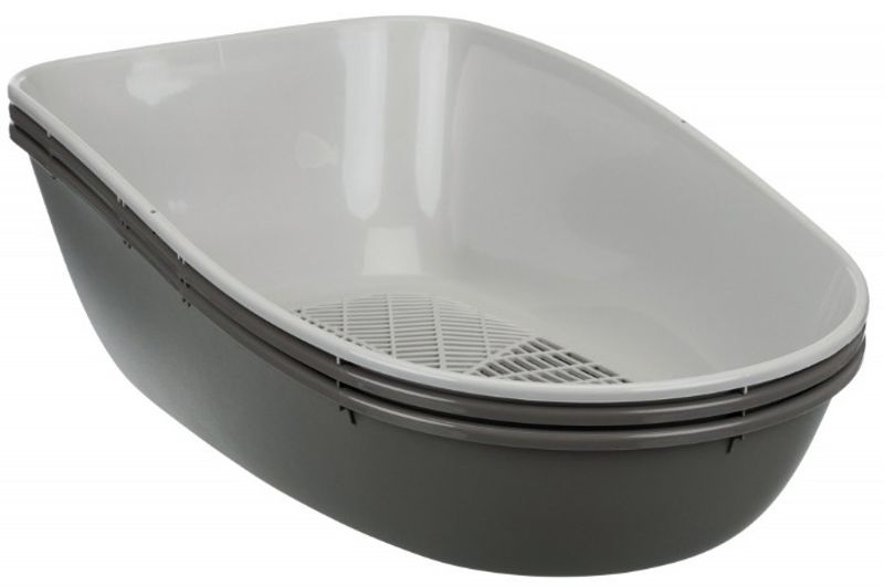 En kattlåda med 3 bottnar och sil gör rensningen av kattlådan till en snabb och enkel procedur. Snygg kattlåda i grå färger.