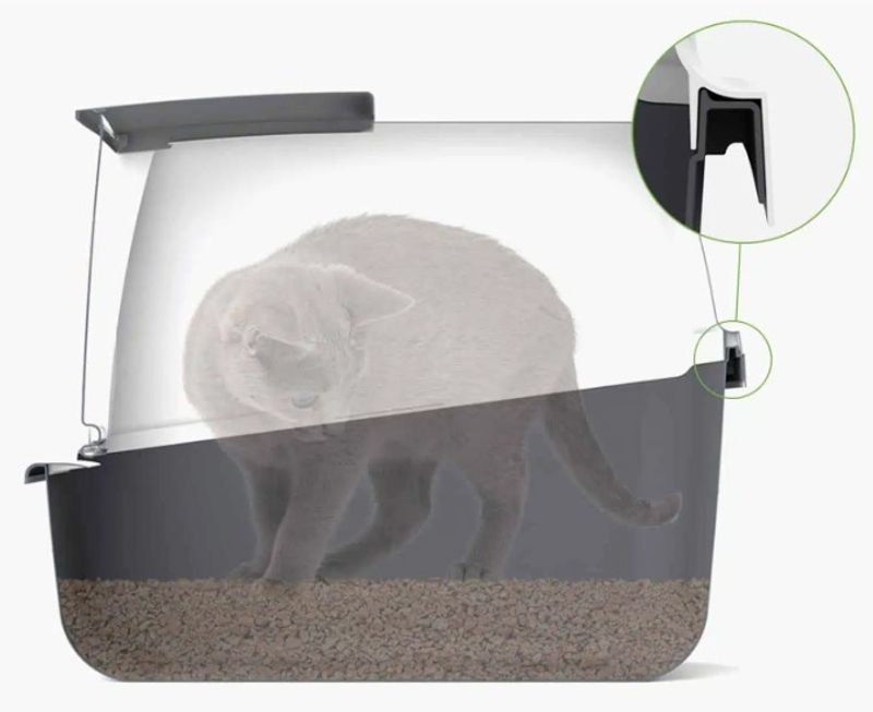 Kattlådorna från Catit har en smart design för att förhindra läckor (se produktbild nr 3). Dels är den bakre delen av kattlådan något upphöjd, men även hela listen runtom kattlådan (där underdel och huv möts) är designad med en överlappning så att vätska inte ska kunna rinna ut ur kattlådan - även om man har en katt som kissar stående och sprayar högt upp mot kattlådans väggar.