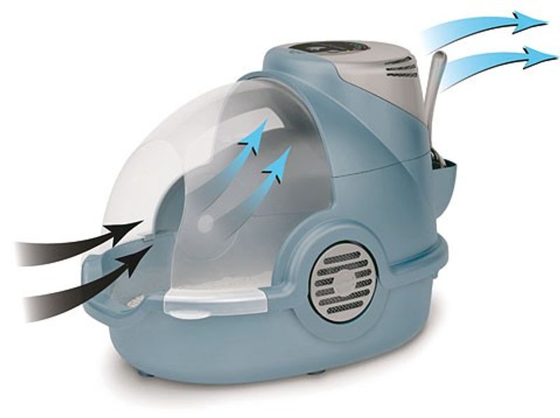 Med sin innovativa och tysta fläkt, som kan slås på och av manuellt, filtreras dålig lukt bort. Denna revolutionerande filterteknik eliminerar upp till 99% oönskad lukt. Samtidigt som lukt filtreras bort elimineras även djurallergener, damm och hår. (Fläkten är tystgående, men observera att det är en fläkt och att ingen fläkt är helt tyst i drift).