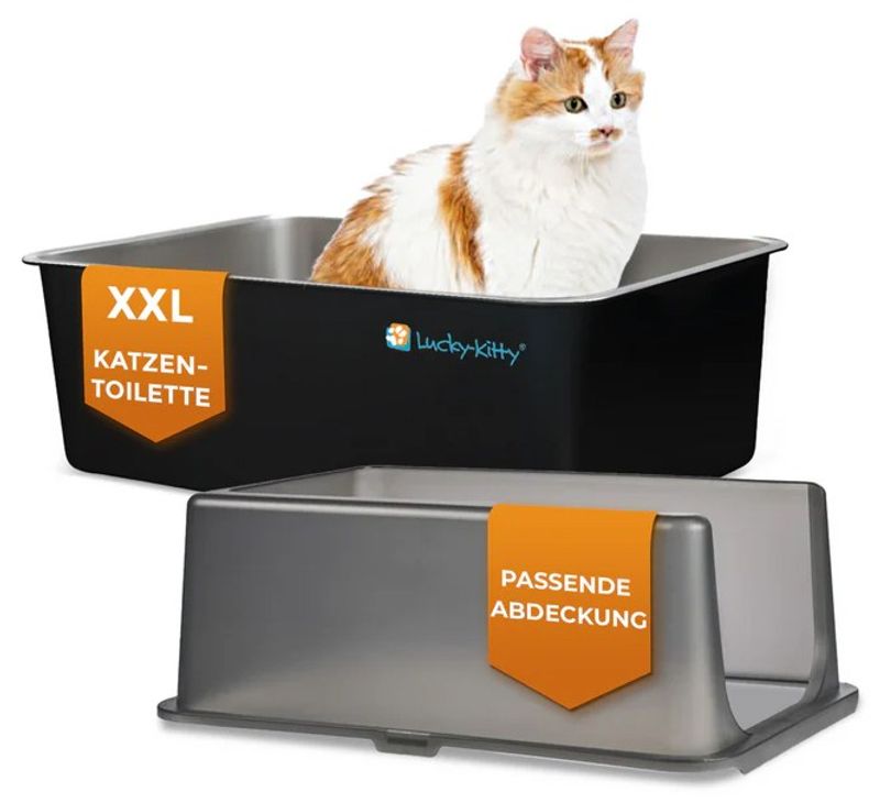 Lucky-Kitty kattlåda i rostfritt stål – XXL med hög kant