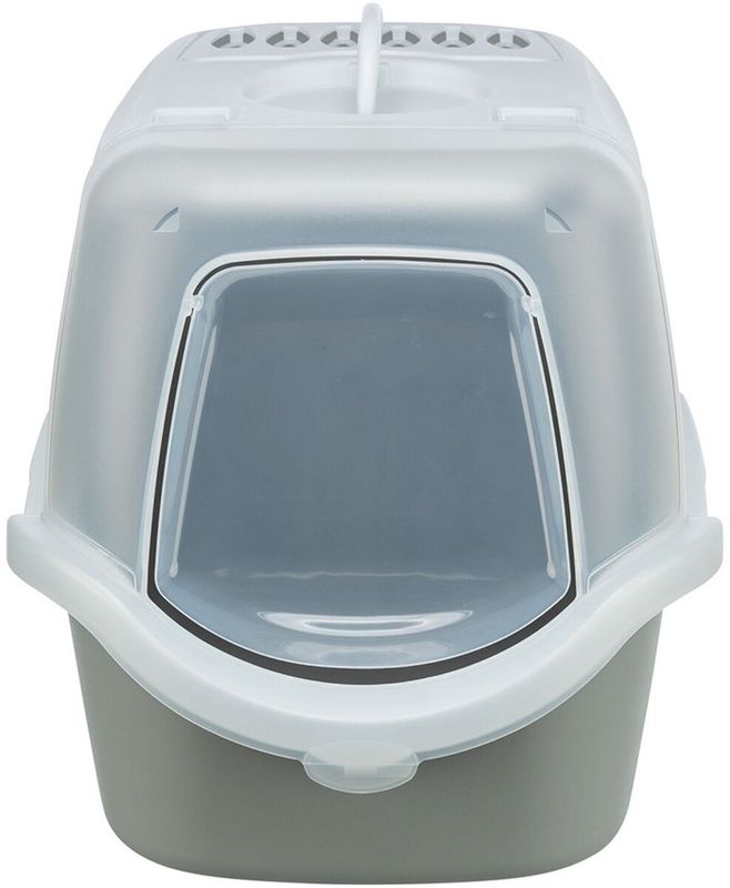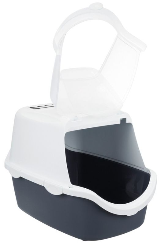 Kattlåda med en smart öppningsbar front - vilket underlättar den dagliga rensningen av er kattlåda. Kattlåda Vico är grå och vit i färgen, fronten är lite transparant så att husse&matte lätt ska kunna se om kattlådan behöver rensas. Ett kolfilter medföljer.
