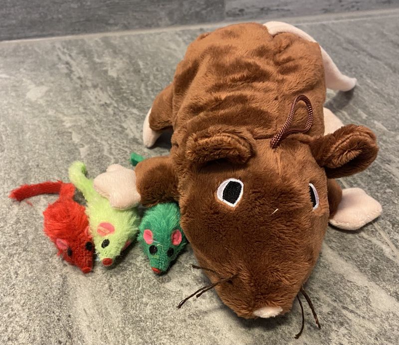 Tycker din stora kisse att vanliga leksaksmöss är små och löjliga? Denna mjuka och goa kattleksak från märket Chew Chew är en riktigt stor råtta som är perfekt att brottas med, att bitas på eller att öva bunny-kicks på med baktassarna!