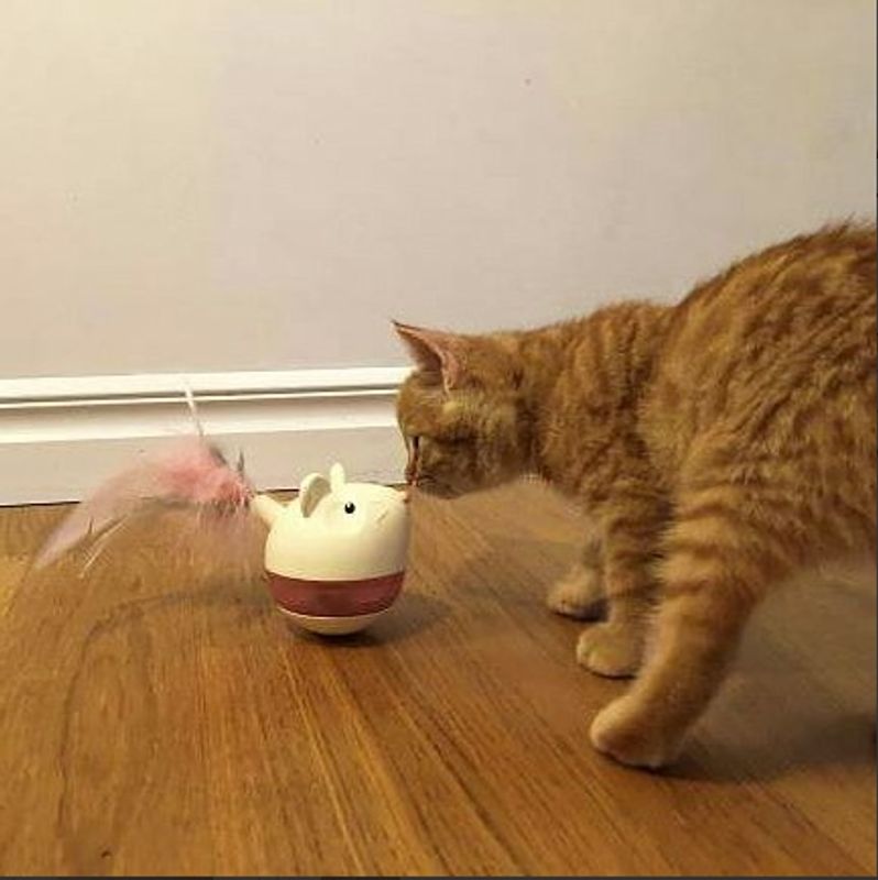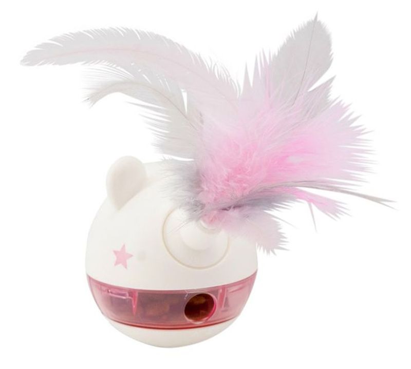 Mösset fylls med kattens torrfoder eller lite godis och locket sätts på. Sedan är det upp till din katt att välta mössen och tippa den åt sidorna för att maten ska trilla ut. Storleken på hålet där maten trillar ut är ställbart så att kan man kan börja lätt och sedan göra den snäppet svårare.