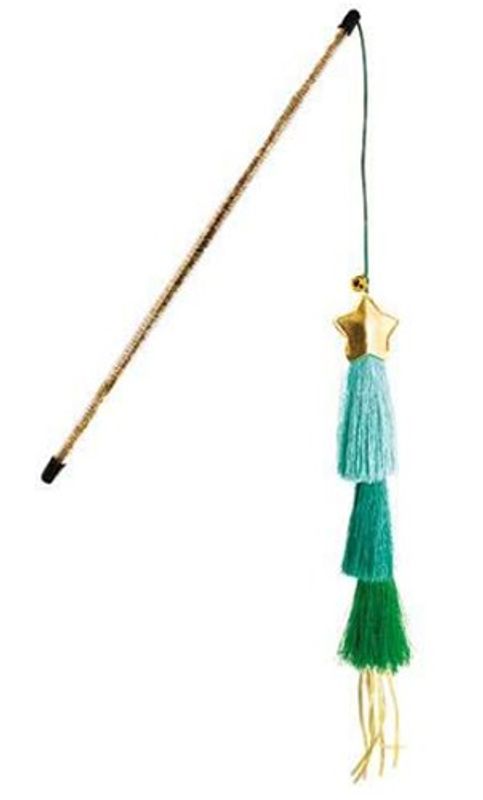 Så fin vippa med fladdriga "tassles" som liknar en julgran med en stjärna i toppen, leksaken har även ett fint glittrigt skaft på spöet. En mycket dekorativ vippa i juletider som både är julpynt och kattleksak samtidigt.