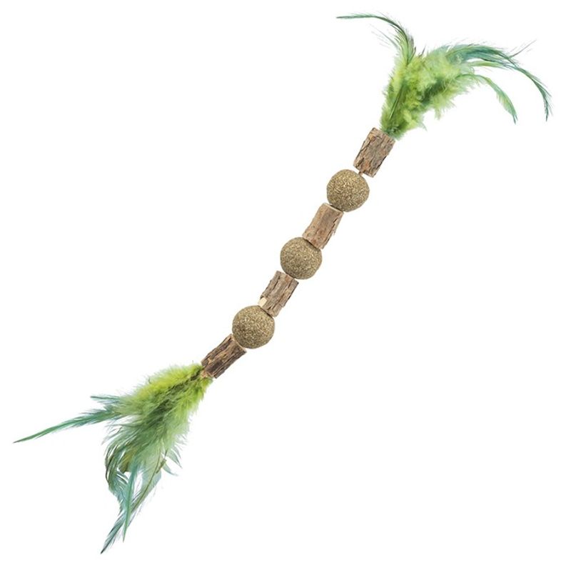 Flera mindre Matatabi-pinnar trädda på ett rep, vilket ger leksaken rörelse! Denna Matatabi-leksak har även 3 kulor med hårdpressad kattmynta! Att tugga på Matatabi-pinnar kan bidra till en bättre munhälsa - och de flesta katter gillar verkligen att gnaga på dessa. Myntan och fjädrarna bidrar till att locka din katt till lek och bus.