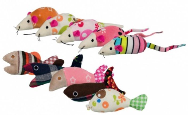 En helt galet söt blandning av möss och fiskar i denna lilla mix. Jättefina tyger, former och färger som lockar din katt till lek - och som matte och husse kanske tycker är lite söta när de ligger framme i hemmet.