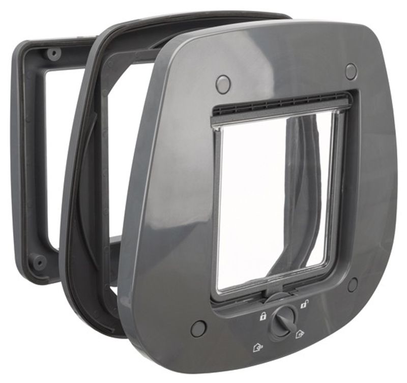 Beskrivning av Kattlucka 4-vägs för glasdörr, grå