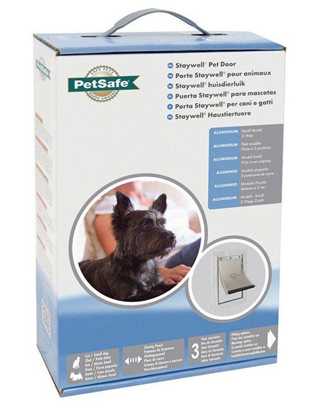 Kattlucka Staywell aluminiumram passar både katter och små hundraser. En fingervisning är att den passar för husdjur på upp till 7 kg - men kontrollera luckans storleksangivelser och mät ditt husdjurs höjd och kontrollera så att luckan passar just ert husdjurs storlek.