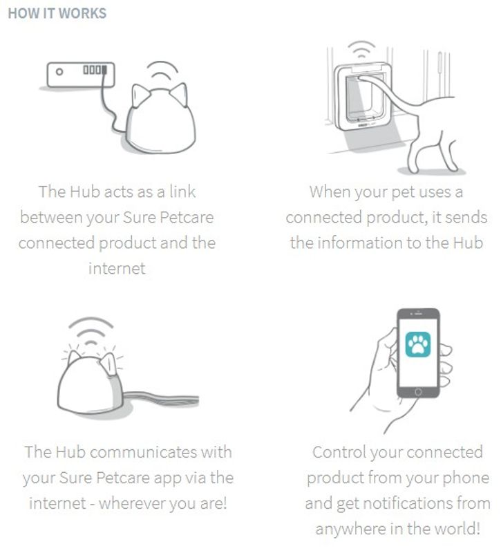 Observera att du behöver både kattluckan och HUB:en (säljs separat) för att koppla din telefon till kattluckan.