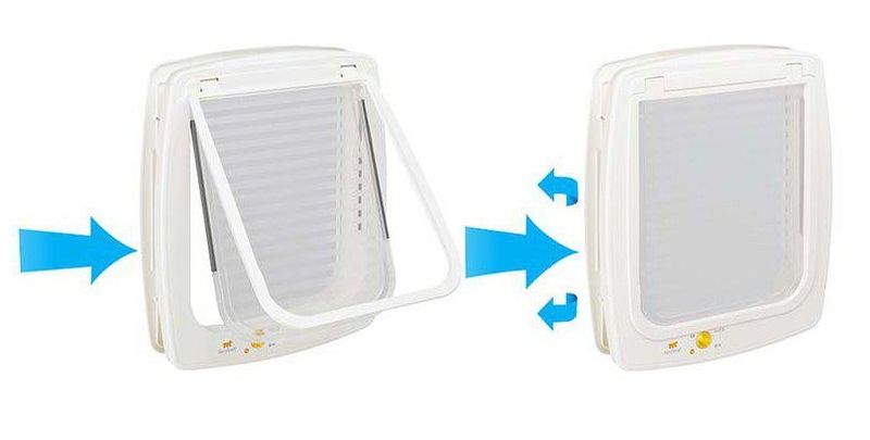 Ferplast har ett eget skyddssystem mot drag, så kallad "Wind Stopper System" och dess 4-vägs stängning gör att du kan justera användningen av kattluckan efter behov: helt öppen i båda riktningarna, helt stängd i båda riktningarna, endast ingång eller endast utgång. Endast ingång men inte utgång kan vara en bra funktion om du t ex vet att ni har en veterinärtid att passa dagen efter.