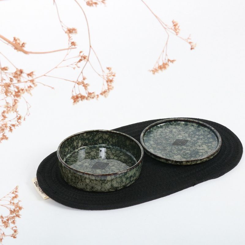Jasper är ett robust fat - keramiken är cirka 8 mm tjock. Undertill har fatet gummifötter så att den står stadigt under kattens måltid.