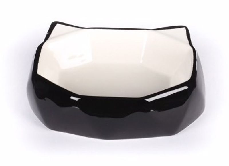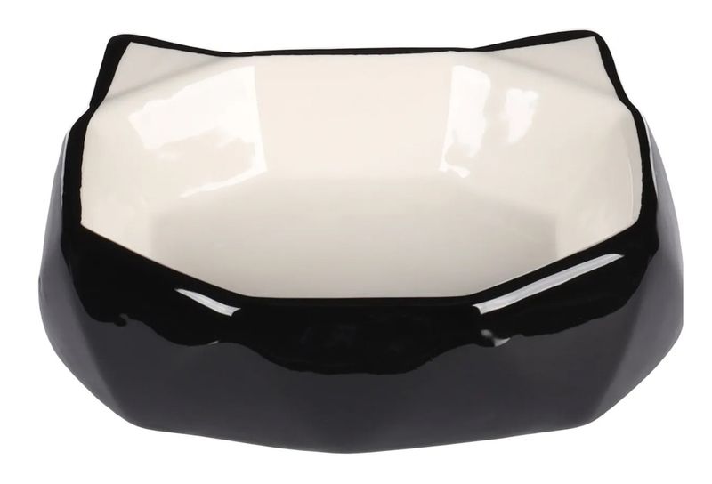 Kattmatskål Kubo, tillverkad i keramik, med låg kant för att inte störa kattens morrhår under måltiden.