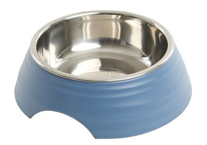 En smart kattmatskål med en löstagbar innerskål i rostfritt stål, lätt att lyfta ur för att köra i diskmaskinen. (Fler rostfria innerskålar finns att köpa separat om man vill/behöver ha fler.)