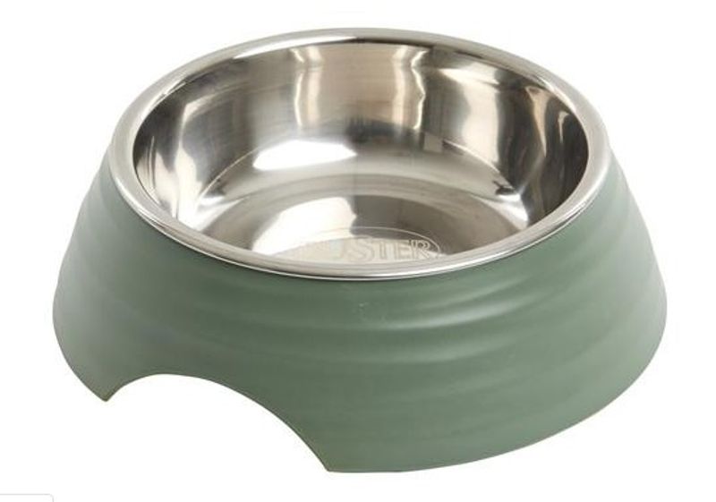 En funktionell matskål som har en löstagbar innerskål i rostfritt stål, lätt att lyfta ur för att köra i diskmaskinen. (Fler rostfria innerskålar finns att köpa separat om man vill/behöver ha fler.)
