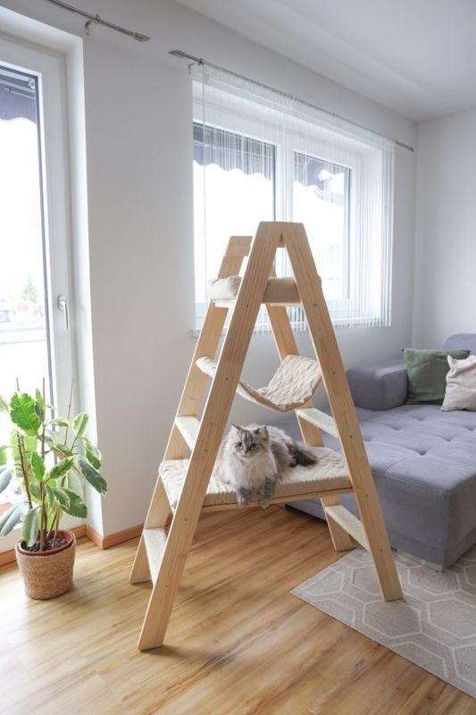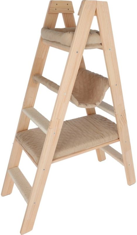 Cat Tree Ladder från varumärket Kerbl är en kattmöbel med både sovplats och hängmatta. Väldigt fin i hemmet och en kul lekplats för din katt. Passar de flesta inredningar med ljust trä och beiga liggdynor.
