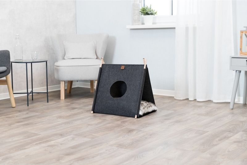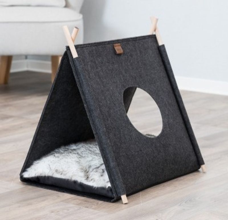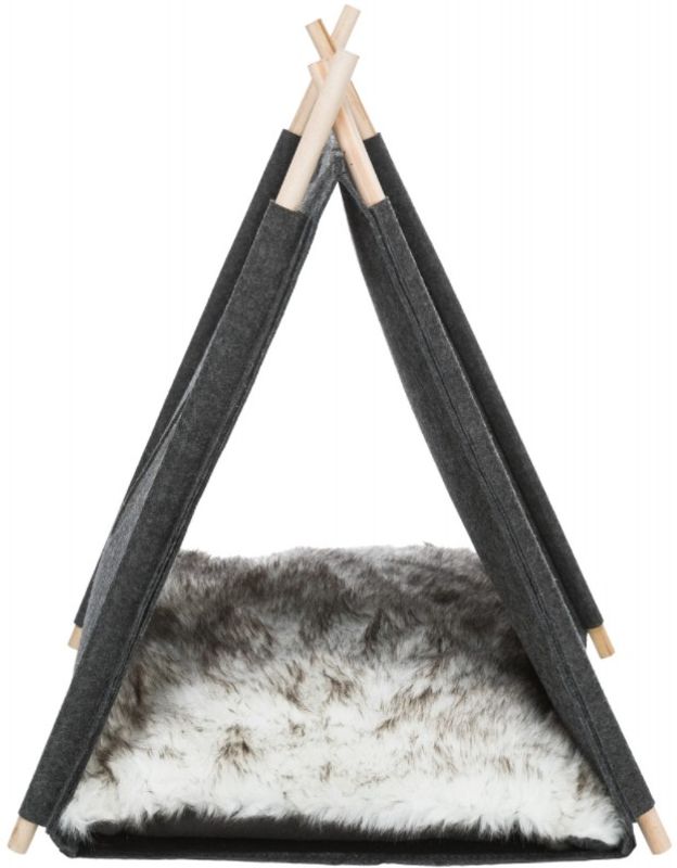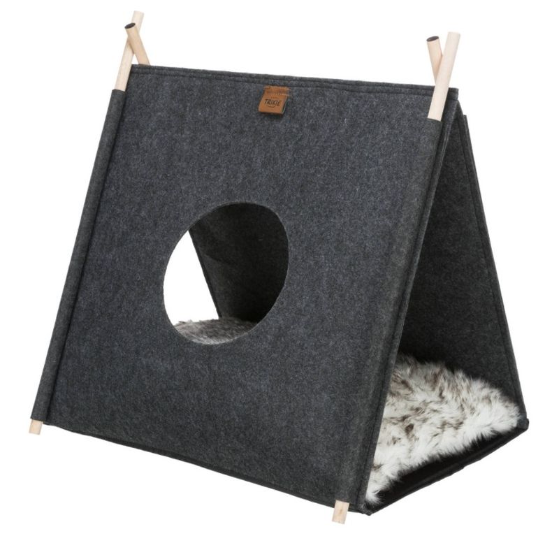 Grå tipi till din katt eller dina kattungar, ett lek- och sovtält som gör sig jättefint även som inredningsdetalj i hemmet. En tipi är kul för katten som gillar att gömma sig och smyga på sina leksaker eller kattkompisar, tipin är även ett mysigt krypin för en catnap.