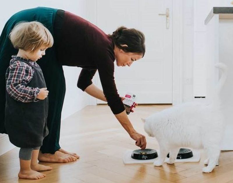Bra kattmatskål i melamin som är väldigt tålig, och som går att diska i maskin.