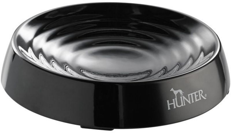 Kattmatskålen Moulins från Hunter i svart melamin, är en bred och låg matskål utan höga kanter.