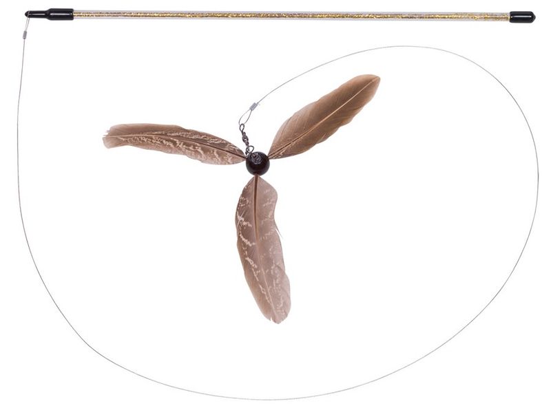 Kattvippa med dekorativt glittrigt skaft samt en rolig fjäderpropeller på metalltråd! En vippa som lockar din katt till lek och jakt med de snurrande fjädrarna!