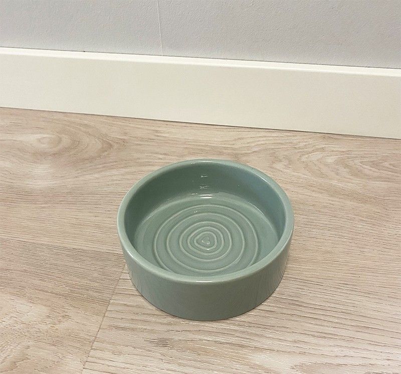 Klassisk matskål i högkvalitativ keramik med bra tyngd. Botten är räfflad i ett fint mönster med ett litet hjärta i mitten. Den här matskålen smälter fint in i det moderna hemmet för dig som vill ha en liten färgklick, men inte för stark. Grönt är skönt.