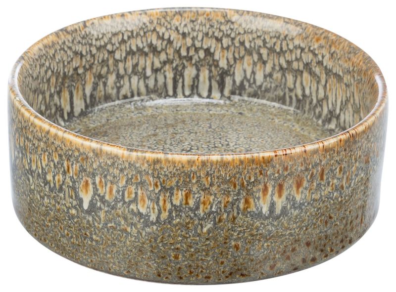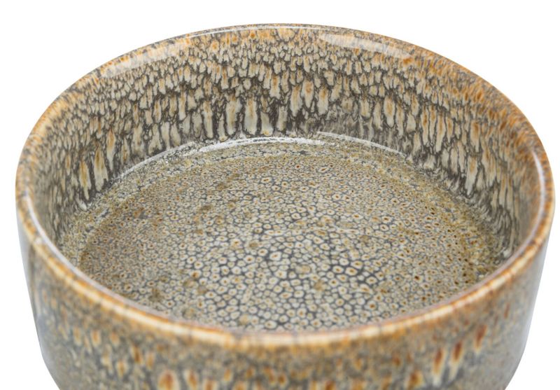 Dessa keramikskålar har en superfin glasering i bruna färgnyanser, glaseringen blir lite olika på varje matskål och varje matskål är därför helt unik i sin färgsättning. Vissa matskålar har ett mindre "mönster" som skålen på den fotade produktbilden, och andra matskålar har fått lite större mönster på sin glasering.