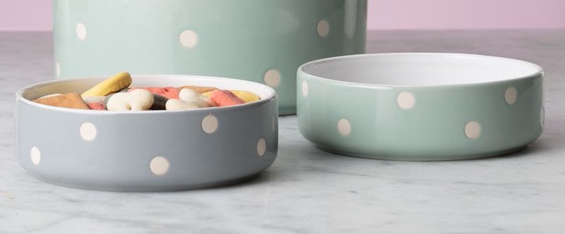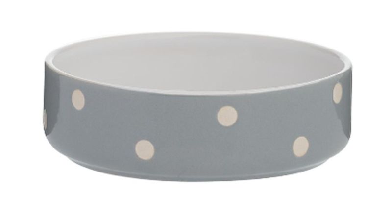 Verkligen superfin matskål med vita polkadots på ljusgrå bakgrund, en inredningsdetalj i hemmet! Mixa och matcha med de andra färgvarianterna av samma matskål!