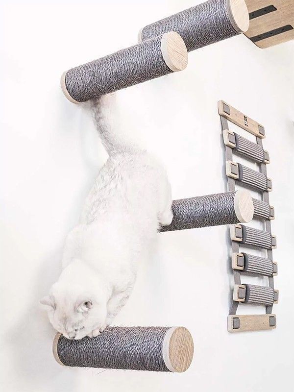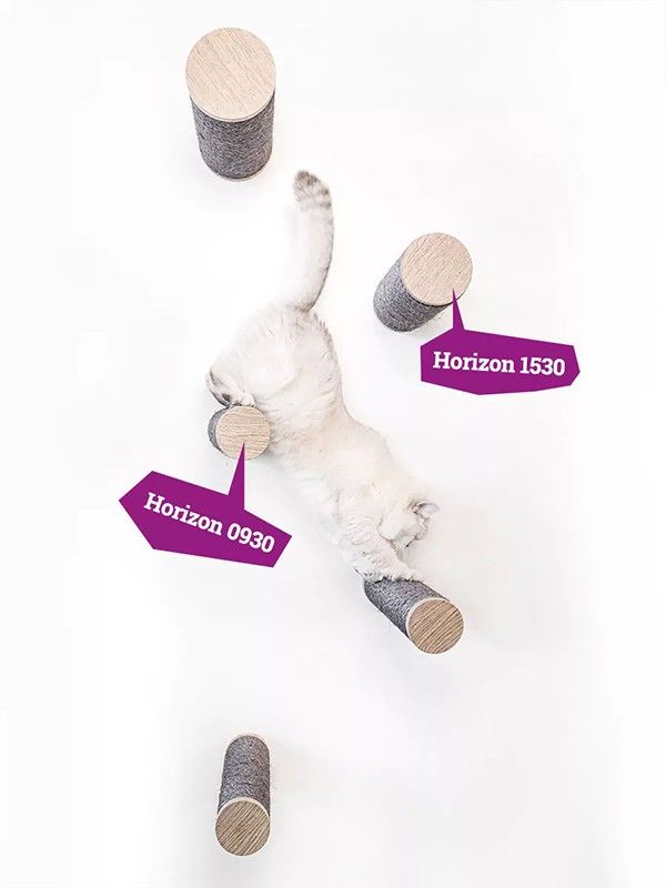 Skapa en stilren och funktionell kattvägg med Horizon 0930 i grå finish och sisal med grå färg. Setet innehåller tre väggmonterade steg som låter din katt klättra, leka och klösa. Perfekt komplement till övriga delar i Wall of Rebels-kollektionen, klättersteget gör att din katt kan klättra och hoppa mellan de olika vägg-modulerna.