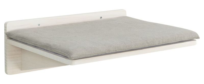 Den grå dynan är avtagbar och sitter fäst med kardborre på trähyllan. Dynan går att tvätta i handtvätt.