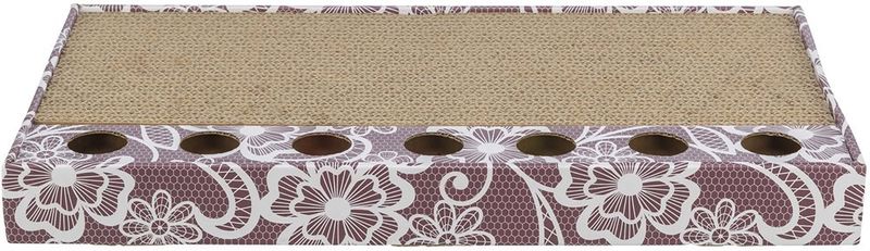Klösbrädan är rosa med blommigt mönster, och är perfekt att placera ut i hemmet så att din katt får har någonstans att klösa där till exempel ett klösträd inte ryms.
