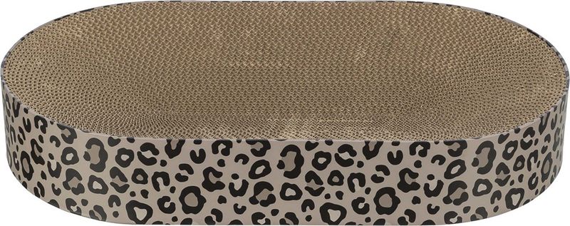 En oval klösbräda som gör sig snygg i hemmet och fungerar toppen som både sovplats och klösbräda. Tillverkad i hårdpressad papp, ett material som är värmande när din katt tar sin kattlur på den - och samtidigt ett material som är skönt under tassarna när din katt vill klösa och markera revir.