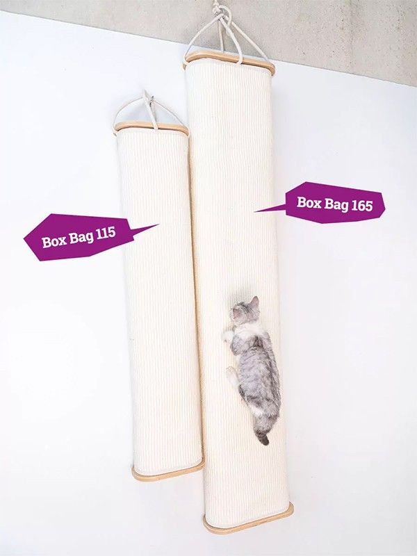 Box Bag 115 Oak är den ultimata väggmonterade klättersäcken för katter som älskar att leka! Helt täckt med slitstark naturfärgad sisal, ger den både klös- och klättermöjligheter i ett. En perfekt lösning för aktiva och busiga katter.