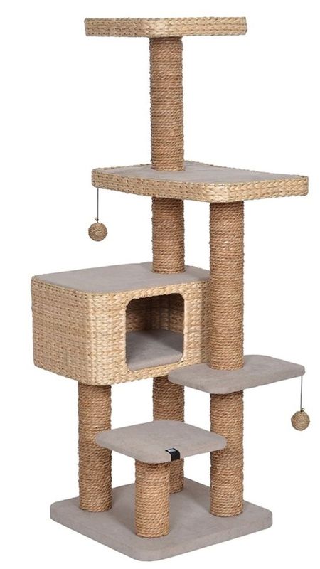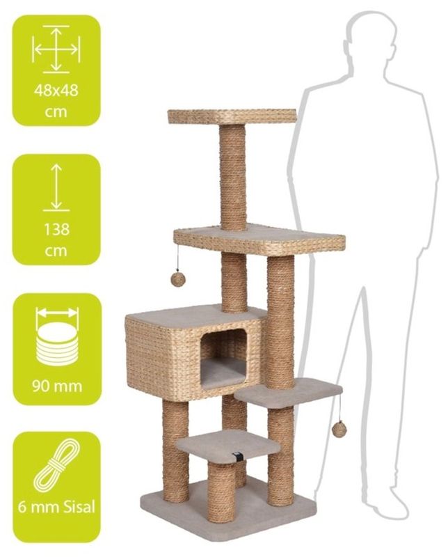 Främjar kattens välbefinnande: Klösträdet är inte bara en källa till nöje utan hjälper även din katt att ta hand om sina klor och markera sitt revir. Med stänger som är 9 cm tjocka och belagda med ett 6 mm lager av tvinnad vattenhyacint, hjälper detta klösträd din katt att naturligt ta bort det slitna yttre lagret på sina klor.