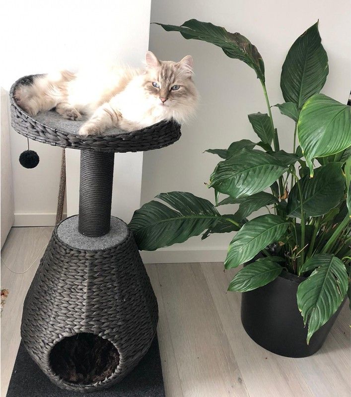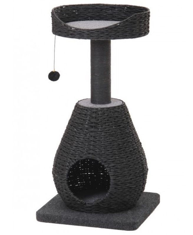 Otroligt snygg klösmöbel till din katt i stilrent svart. Nertill en mysig koja att sova i och upptill en spanarplats i bra höjd. Gör sig riktigt fin i hemmet!
