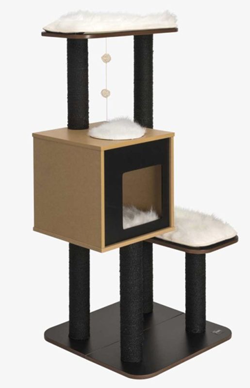 Vesper High Base Black är en klösmöbel med modern design som passar fint i hemmet. Klösträdet har tre nivåer för spaning ut över reviret och en mysig kub där din kisse kan ta sin catnap. Kuben är designad med 2 ingångar så att din katt inte ska känna sig trängd.