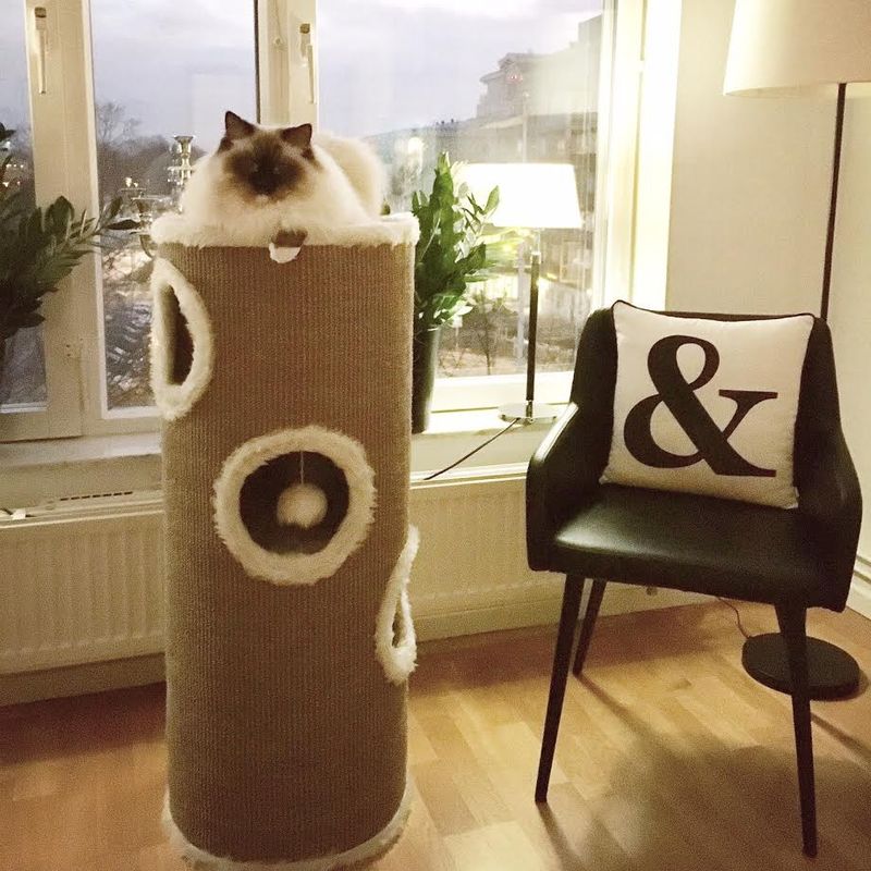 En tunna som klösmöbel tar inte så stor plats i hemmet, då dess diameter bara är 40 cm.