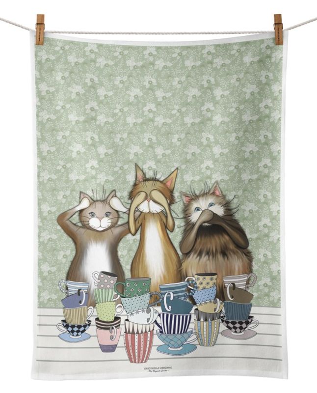Fantastiskt fina kökshandduken med Pias nya motiv "Fikakatt" från märket Originella Original. Kökshandduken är tillverkad i 100% linne.