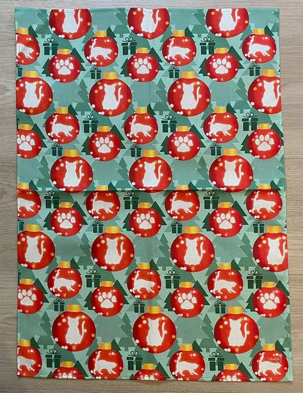 Kökshandduk Julkulor kattmotiv