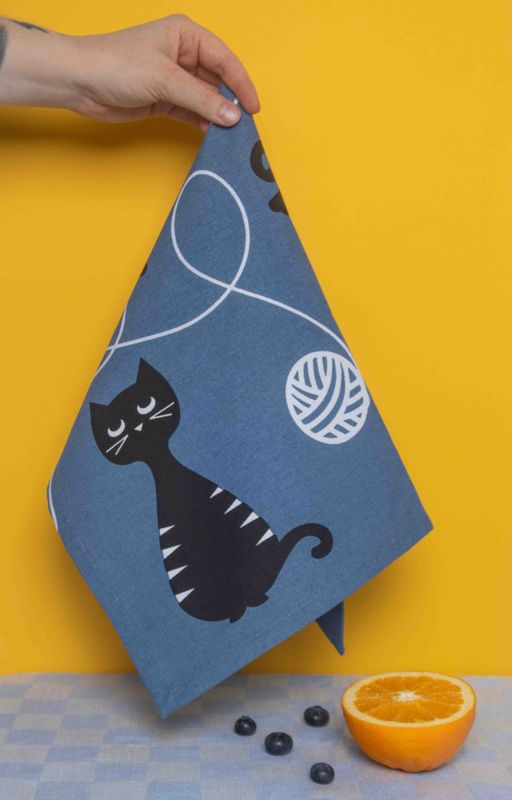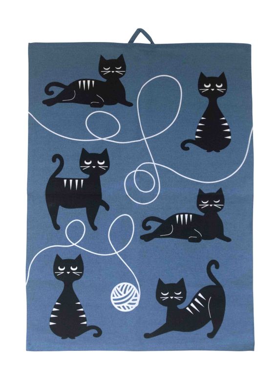 Kökshandduk Kattfamiljen för kattälskaren som vill ha lite extra personlig inredning i köket. Den lekfulla designen med katter gör att köket känns både gladare och mer hemtrevligt och den passar lika bra på kroken, som framdukad vid servering eller över ett nybakat bröd.