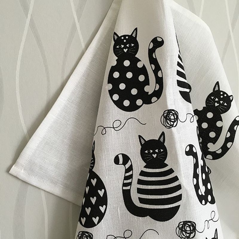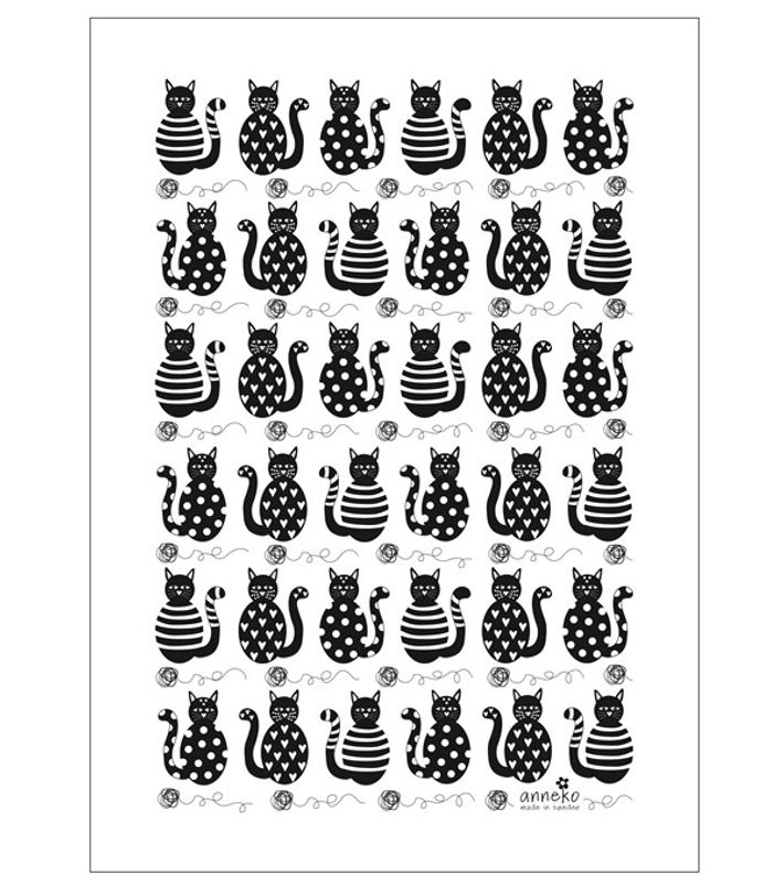 Piffig kökshandduk med det härliga kattmotivet från AnnEko design. Kökshandduken är tillverkad i 50% bomull och 50% linne och tvättäkta i 60°C. Den är tryckt med vattenlöslig och miljövänlig färg och blir din kökskompis i många år!
