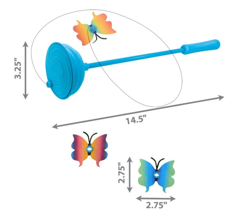 Butterfly Purrsuit Teaser är designad för att efterlikna naturliga fjärilar och ska väcka kattens instinkter för jakt och slå efter sitt byte med tassen. Leksaken innehåller tre utbytbara fjärilar och fler refiller finns att köpa separat.