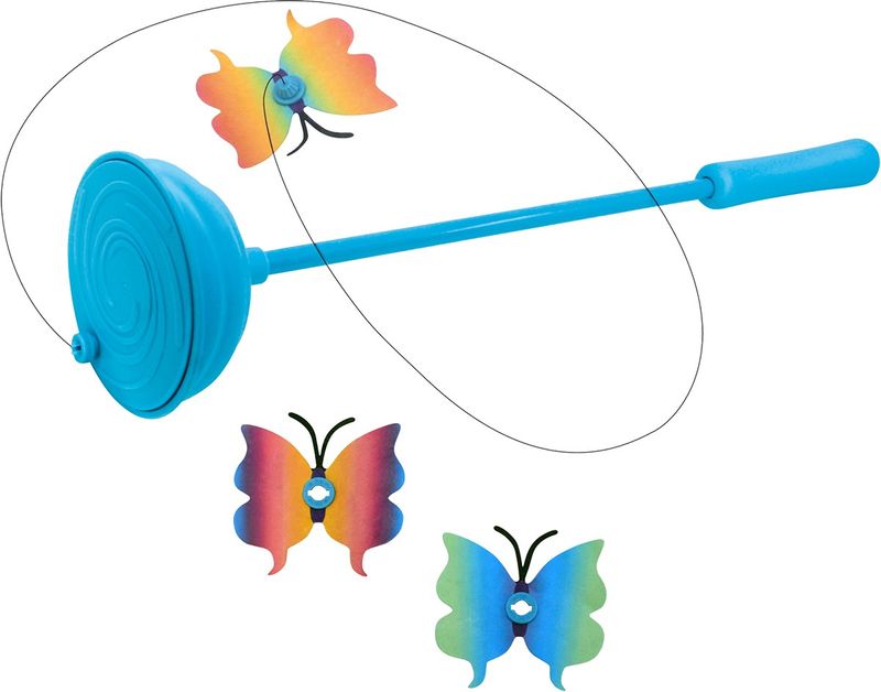 Förläng det roliga genom att ändra flygmönstret på fjärilarna genom att ändra stavens vinkel. Den interaktiva leken kan också varieras genom att använda automatiskt eller manuellt läge.