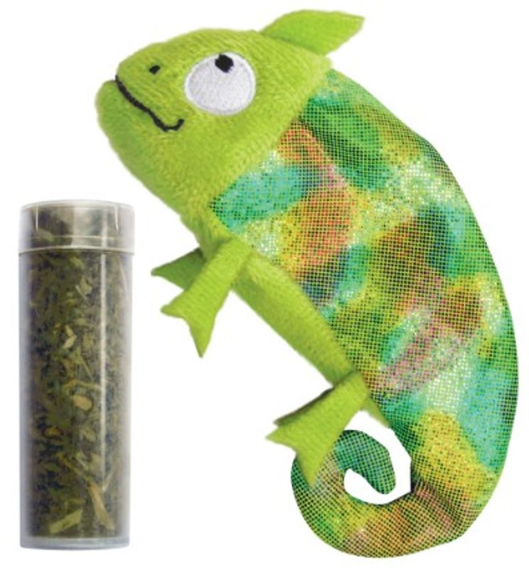 Glansig och fin kattleksak Kameleont ingår i Kongs serie påfyllningsbara leksaker, de levereras alla ihop med ett rör av Kongs egen starka kvalitets kattmynta. Leksaken är öppningsbar, och där finner du ett fack där du kan fylla på med ny kattmynta - så att leksaken blir "som ny" för din katt igen och igen.