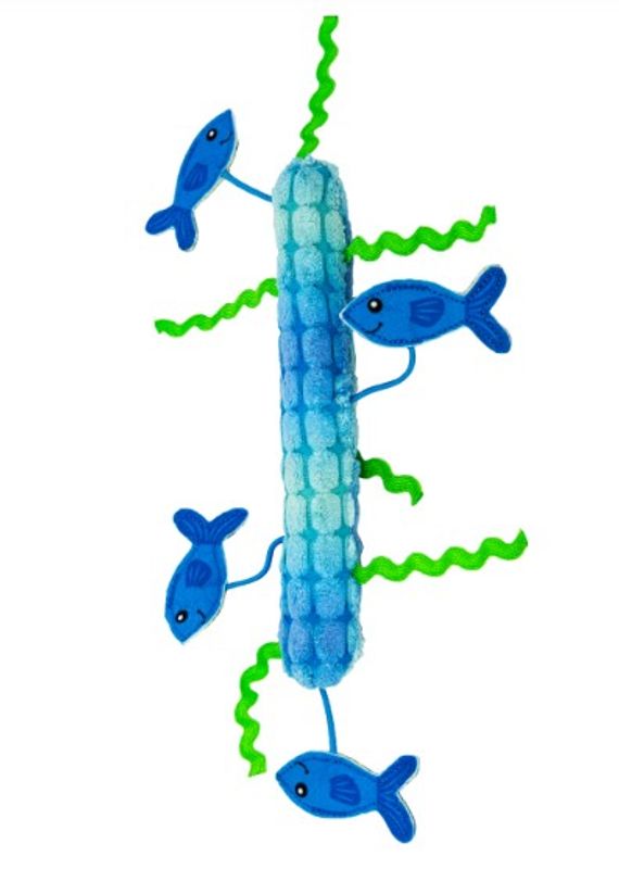 Stickaroo är en aktiveringsleksak till din katt eller kattunge, den uppmuntrar till brottningslekar och sparkar med baktassarna (så kallade bunnykicks). Den gröna tången och de blå fiskarna uppmuntrar till lek och bus genom färg och form, leksaken belönar fångst-instinkten hos katten. Stiickaroo har prassel inuti och såklart även Kongs egen Premium Nordamerikanske kattmynta.