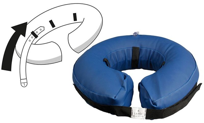 Kragen består av en uppblåsbar PVC-ring som skyddas av ett specialhölje, kragen kan enkelt blåsas upp med munnen. Djurets halsband kan träs genom öppningarna varefter kardborrbandet dras åt. Det går alltså väldigt snabbt att ta på och av kragen, utan att det oroar djuret.