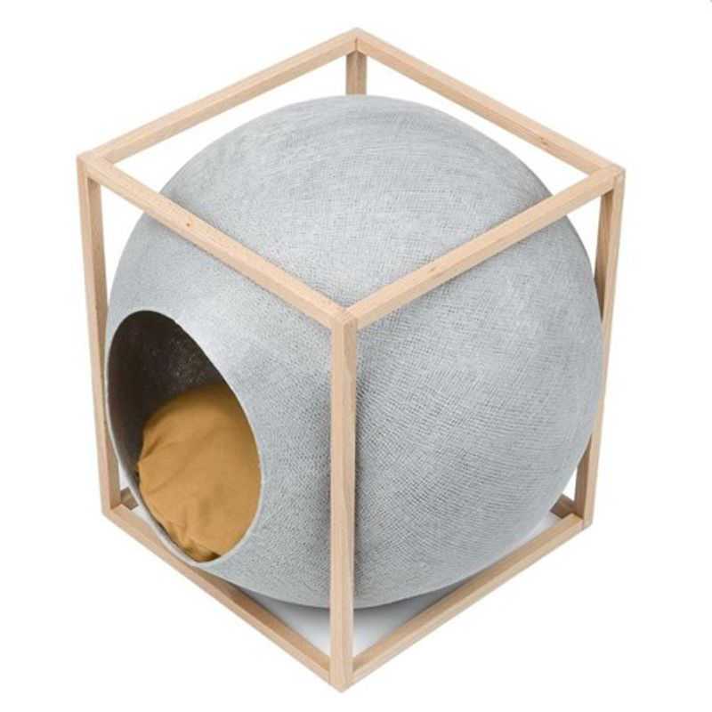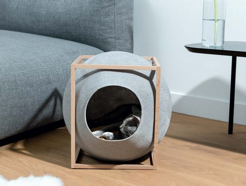 Le Cube från det franska märket Meyou Paris kombinerar renheten med grafisk form med mjukheten av en vävd bubbla. En skyddad plats för din katt: en mysig kub med plats för sömn och lek, både funktionell och designässigt fin i hemmet.
