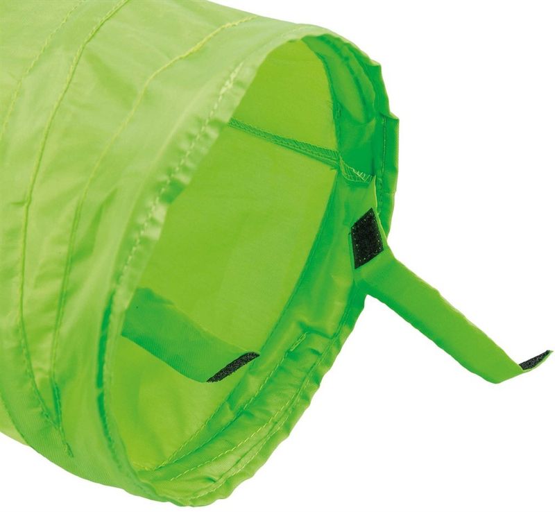 Material: Nylonimitation (polyester) med sprialfjäder som håller tunneln uppe.