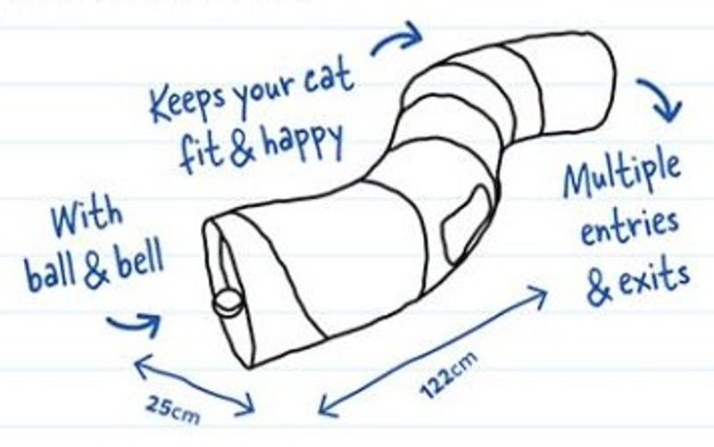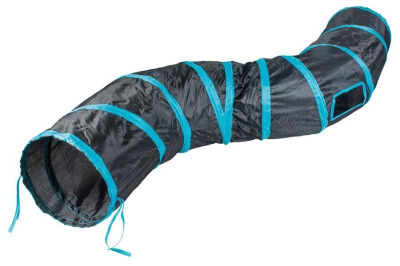 Lektunnel i svart och blå färg, designed i en "kurvig" modell som locker din katt till smyg-lekar. Tunnel som passar både ensamkatten som gillar att smyga på husse och matte (och på sina leksaker), men den passar även jättebra i hemmet där flera katter gärna leker och busar tillsammans - och smyger på och överraskar varandra.