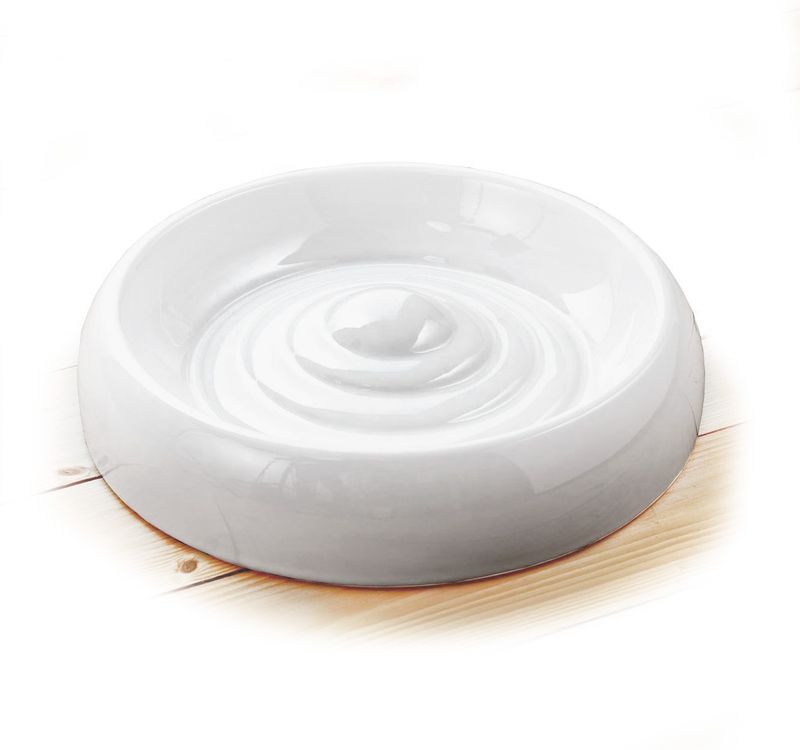 Dess rundade form med låga kanter gör att kattens känsliga morrhår inte slår i några skålkanter vilket bidrar till att katten äter sin måltid ur matskålen istället för att dra ut maten på golvet. Silikonfötter samt keramikens tyngd gör att matskålen står stadigt och inte puttas omkring medan katten äter. Kattmatskålen har en räfflad botten så att maten ska ligga på plats i skålen och speciellt katter med ett kortare nosparti äter enklare ur denna.